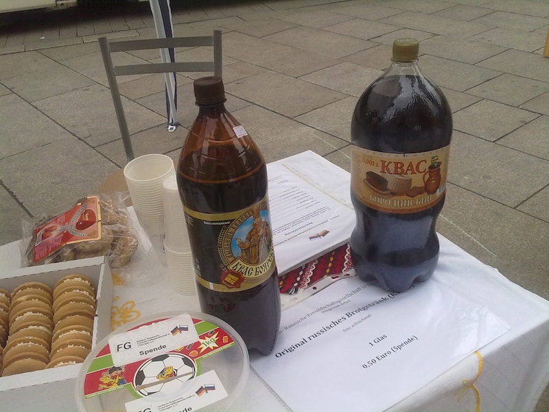 Zum Lesen hatten wir unser neuestes Mitteilungsheft mitgebracht, welches auf grosses Interesse stiess und von vielen als Mitbringsel mitgenommen wurde. Skeptisch wurde immer auf die Kwas-Flasche geschaut und nach einer Kostprobe verlangten einige sogar noch einen Nachschlag, was übrigens auch auf die Plätzchen(Prjaniki) und das echte russische Konfekt(mit den vielen schönen Namen) zutraf.