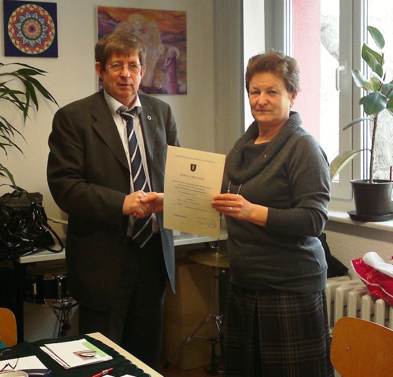 Die rührige Vorsitzende der Ortsgruppe, Tamara Barabasch zog eine beeindruckende Bilanz der erreichten Ergebnisse der Arbeit in den vergangenen 25 Jahren. Begonnen bei den ersten Anfängen der Vereinsgründung, die unter aktivem Einsatz und großer Hingabe für die zu lösenden Probleme bei der Eingliederung in die Gesellschaft von Swetlana Spannagel geleistet wurde, hat sich die Ortsgruppe bis heute einen Namen in der Erfurter Stadtgesellschaft erarbeitet. Mit Fug und Recht können wir sagen, dass die Deutschen aus Russland eine Bereicherung für unsere Gesellschaft sind. Feste freundschaftliche Verbindungen prägen seit vielen Jahren die Zusammenarbeit mit der Deutsch-Russischen Freundschaftsgesellschaft in Thüringen e.V..