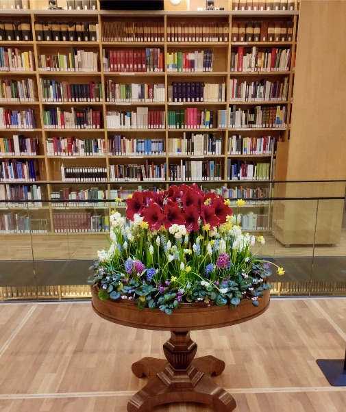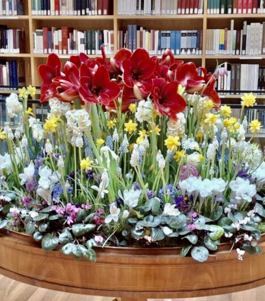 Dieser Mini-Blumengarten, ein Frühlingswunder im Februar, der jährlich in der Anna Amalia Bibliothek in Weimar zu gestaltet wird, ist die wohlverdiente Erinnerung an eine großartige Frau, Maria Pawlowna, russische Prinzessin und deutsche Herrscherin.