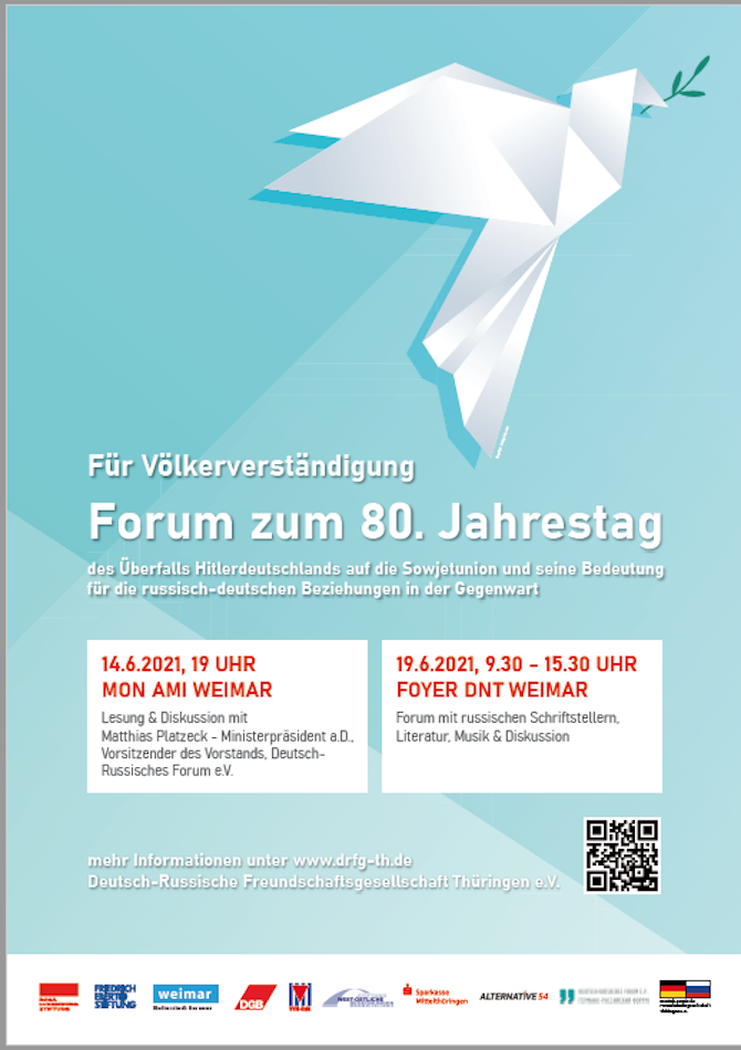 Der Liedermacher Gerd Krambehr begrüsste den Tag der Befreiung mit aufrüttelnden Liedern, teils in deutscher und in russischer Sprache gesungen. Ein zutiefst zu Herzen gehendes Gedicht trug unser Mitglied Stalin Polewoi vor, das in einer Bearbeitung von Dr. Weisskopf ins Deutsche übertragen wurde. Frau Elke Pudzuhn erinnerte an den Jahrestag der Selbstbefreíung des Konzentrationslagers Buchenwald, entscheidend begünstigt durch den Vormarsch der amerikanischen Truppen in Thüringen. Eine weitere Bürgerin rief das Gedenken an die Wehrmachtsdesserteure in Erinnerung, deren Rehabilitation erst 2012 durch den Bundestag erfolgte. Auch ein spätes Eingeständnis der Bewältigung der Vergangenheit.
