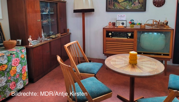 Ein kurzer Rundgang durch die unzähligen Erinnerungsstücke aus dem Alltag, die mir noch bestens in Erinnerung sind, lässt mich staunen. Vom LADA über die „Pappe“ hin zur Suhler Simson Vogel Moped Serie, bis zu bekannten Möbelstücken, Rundfunk-und Fernsehgeräten, Haushaltsartikeln, Schallplatten, Kosmetika usw., kommt man wohl auf etliche tausend Exponate, die die Sammlung vereint.