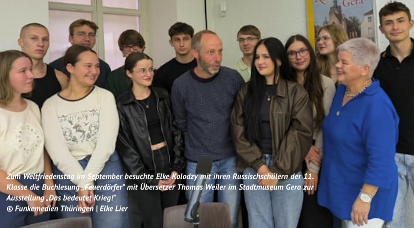 Die Geraer Russischlehrerin Elke Kolodzy unterrichtet trotz Rentenalters und sinkender Nachfrage weiter Russisch. Sie befindet sich im 44. Berufsjahr. Sie sieht Russisch aber auch im Kontext des Ukrainekriegs der bereits über 1400 Tage dauert und sich im vierten Kriegsjahr befindet.