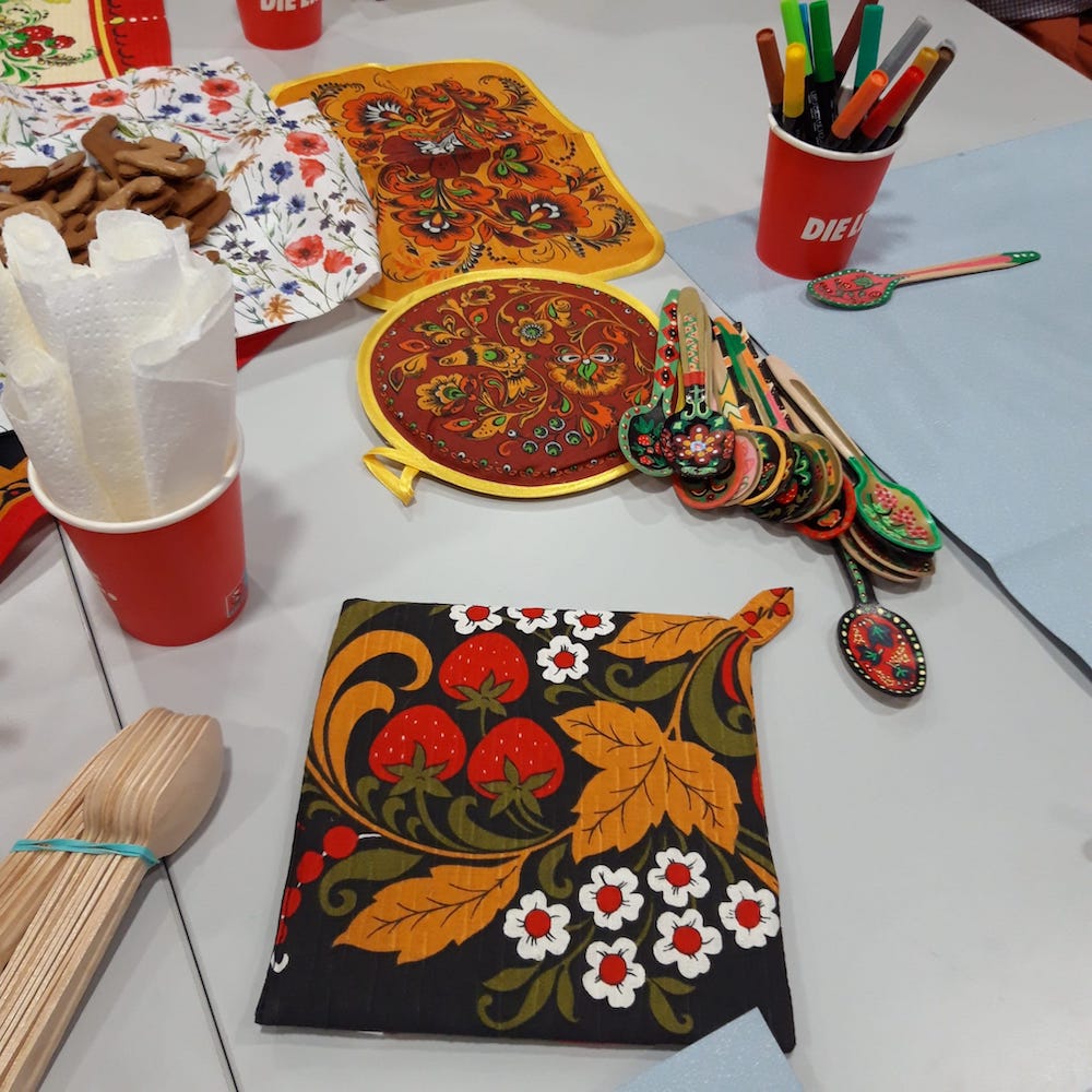 Am 16.09.25 trafen sich einige Mitglieder unserer Regionalgruppe und Interessierte zur einer ganz kreativen Runde. Auf dem Plan stand das gemeinsame Bemalen von Holzlöffeln mit ukrainischen und russischen Motiven.