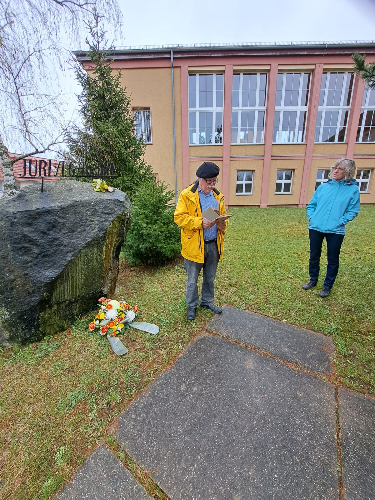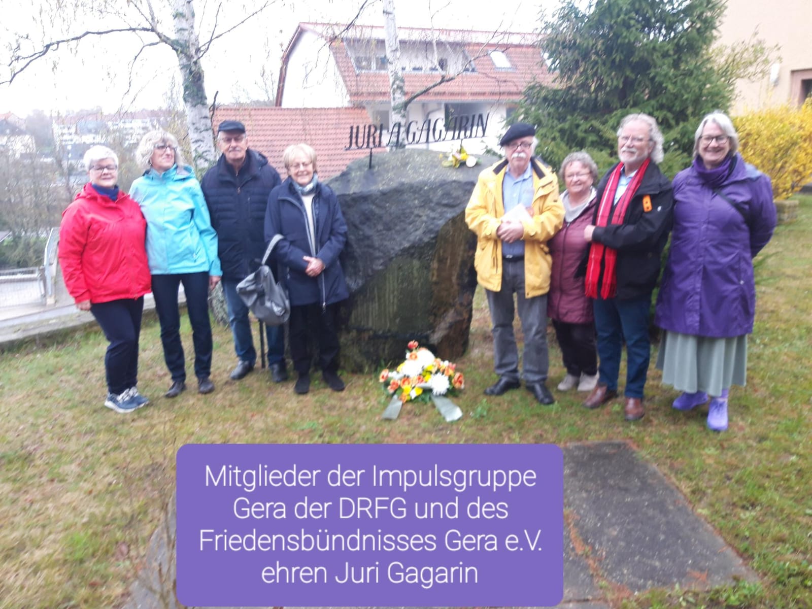 Am heutigen 12. April 2026 ehrten Mitglieder der Impulsgruppe Gera am Gagarin Denkmal die historische Tat vor nunmehr 65 Jahren und legten Blumen nieder.